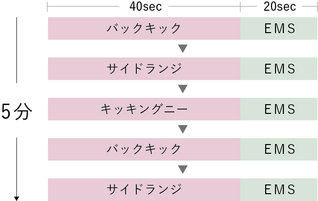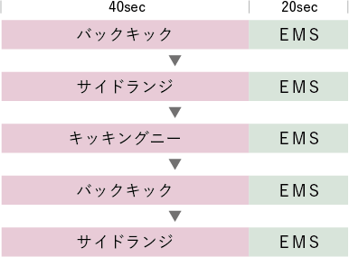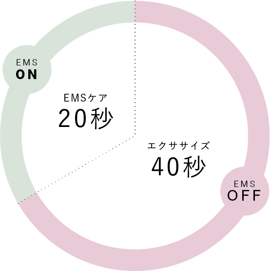 「HIIT」は、40秒間の高強度運動と20秒間の休憩を繰り返すシンプルなエクササイズ法。わずかな時間で集中的にエクササイズができると話題の最新メソッドです。「HIIT EMSモード」は、このエクササイズにEMSをプラス。EMSが自動オフになった約40秒間にカラダを動かして筋肉を追い込み、EMSがオンになった約20秒間の休憩タイムにEMSで筋肉をケア。さらに効率的なHIITエクササイズを叶えます。