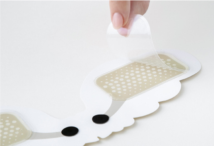粘着面の保護フィルムを剥がし、使用したい部位に貼り付ける。