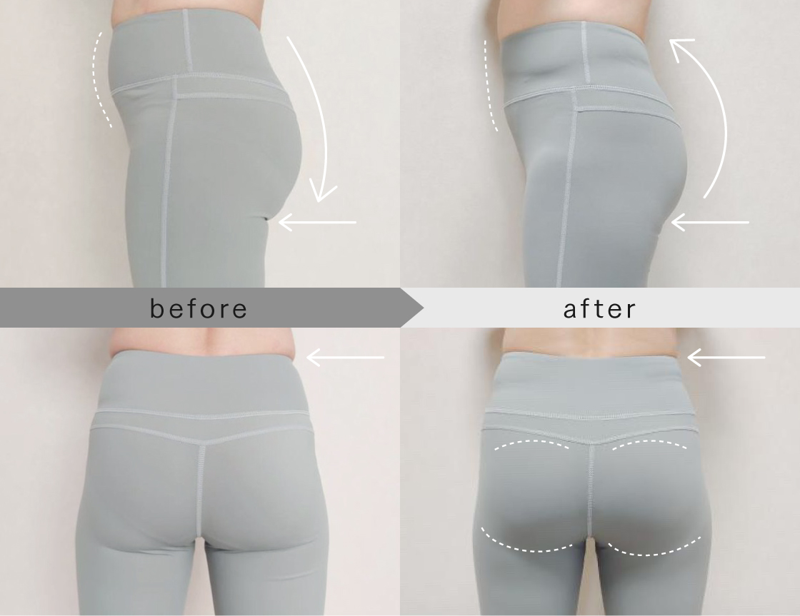 トップが高く、美しい形のお尻は後ろ姿を若々しく見せてくれます。