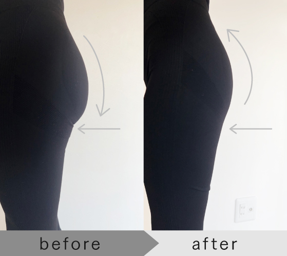 お尻からひざ下くらいまでキュ~っと筋肉が収縮します。お尻がキュッと締まってきた感覚があります。お腹の中まで届いているせいか、産後からずっと悩んでいた尿漏れも気にならなくなってきました!!