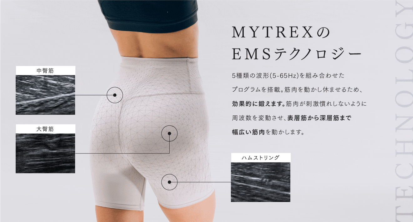 そこで「MYTREX」では毎日入るお風呂に着眼。お風呂で使用できれば、水の導電性で体感も筋肉の動きにも非常に効率的。