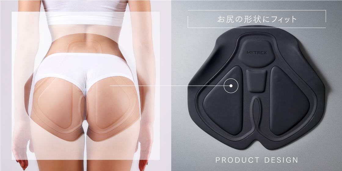 人間工学の角度からお尻にフィットする製品設計を始め、人体の臀部に合った輪郭を採用。EMSのパワーを正確に体に伝えられる形状にしました。