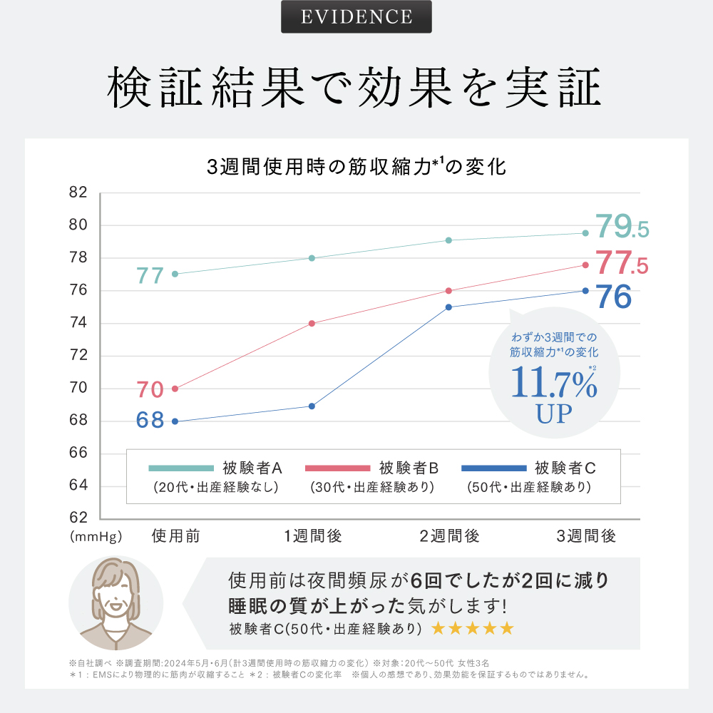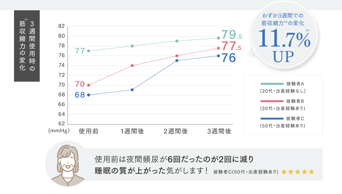 ※自社調べ ※調査期間:2024年5月〜8月(計11週間使用時の筋収縮力の変化)