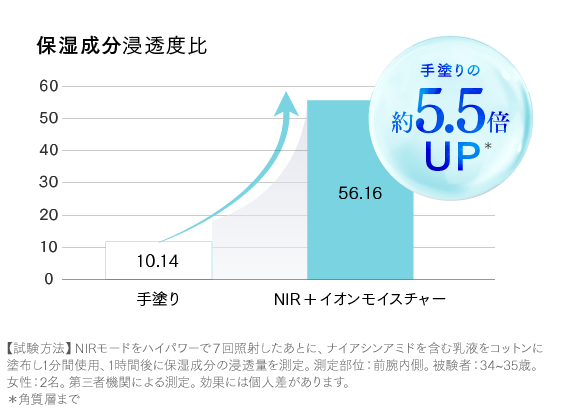 肌表面を温めることで、肌の奥まで熱を届けることができ、環境に左右されることなく安定したケアができます。