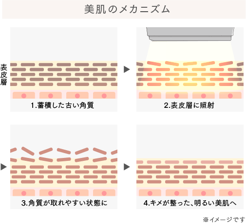 表皮には、シミやそばかすの原因となるメラニン色素に反応し、これを破壊・排出することで、色素沈着を改善します。