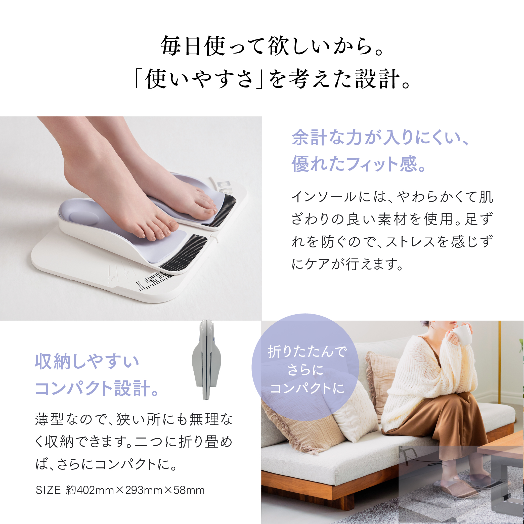 *1 使用時間。足の角度を30°〜40°まで広げて、そのまま5秒間キープし30回繰り返した場合。 *2 2024年1月時点出荷実績