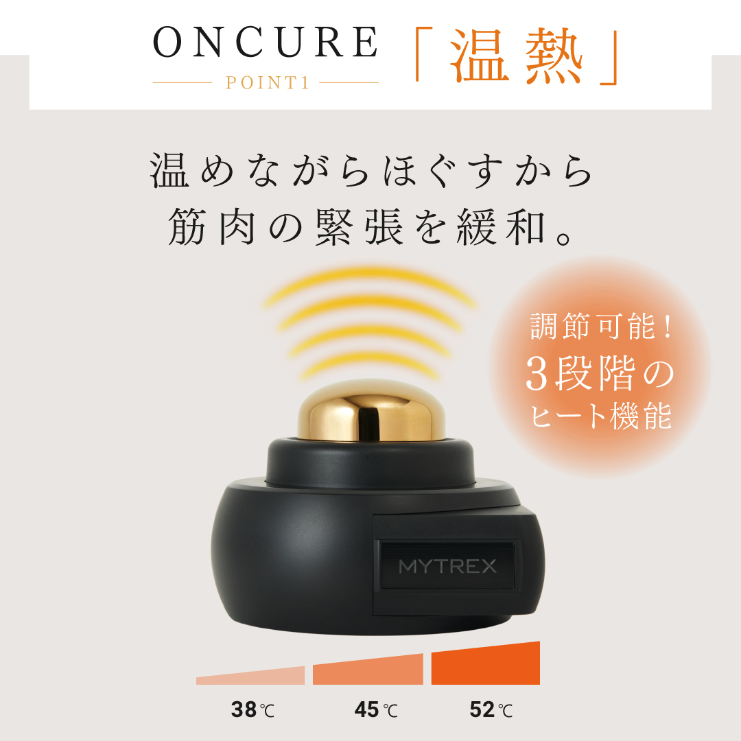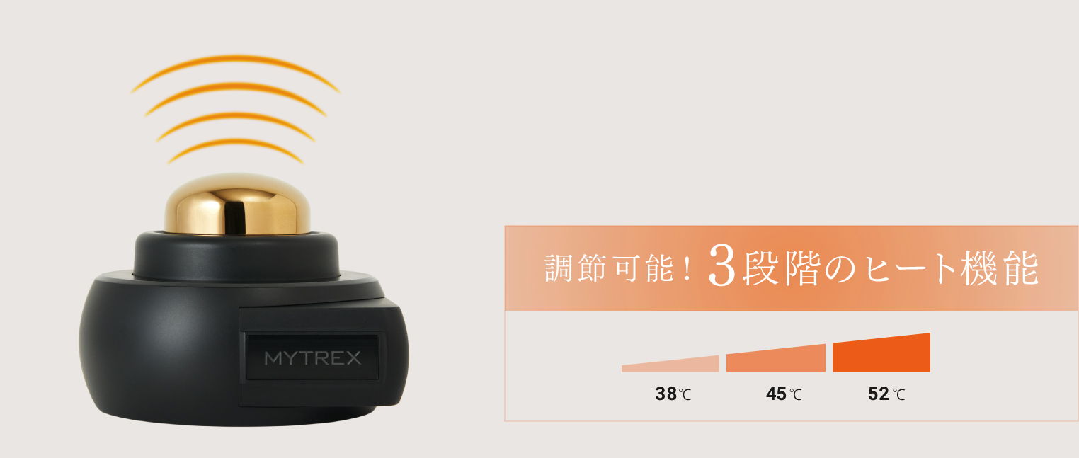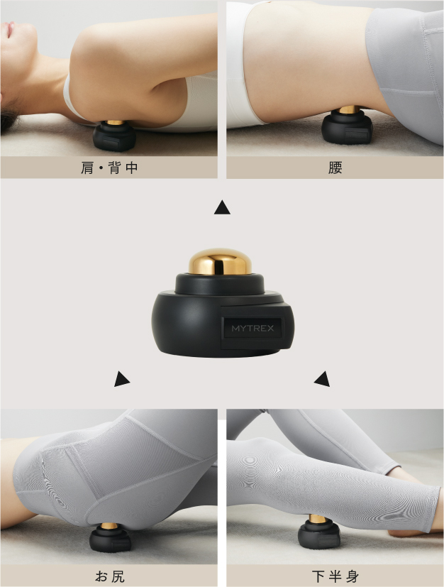「お灸」の力を日常に。いつでもどこでも、好きな場所で使える温灸器。MYTREXの特許技術※で温めながらほぐすから筋肉の緊張を緩和。温熱が筋肉の奥深くまで刺激します。自分好みのチカラで刺激可能で全身のコリをマルチカバー。持ち運びもできる手のひらサイズで、移動中はもちろん、仕事中や家事の合間にもご使用できます。