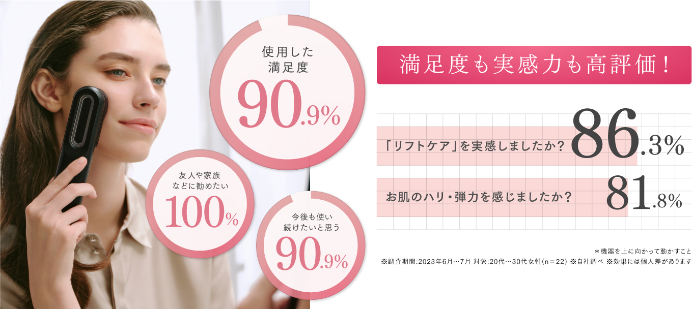 ※美容機器で顔を刺激したことによる一時的な変化。 効果には個人差があります。