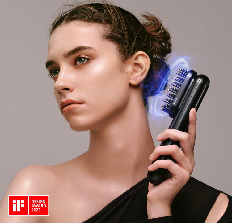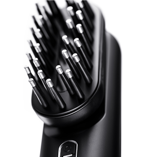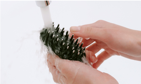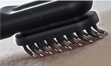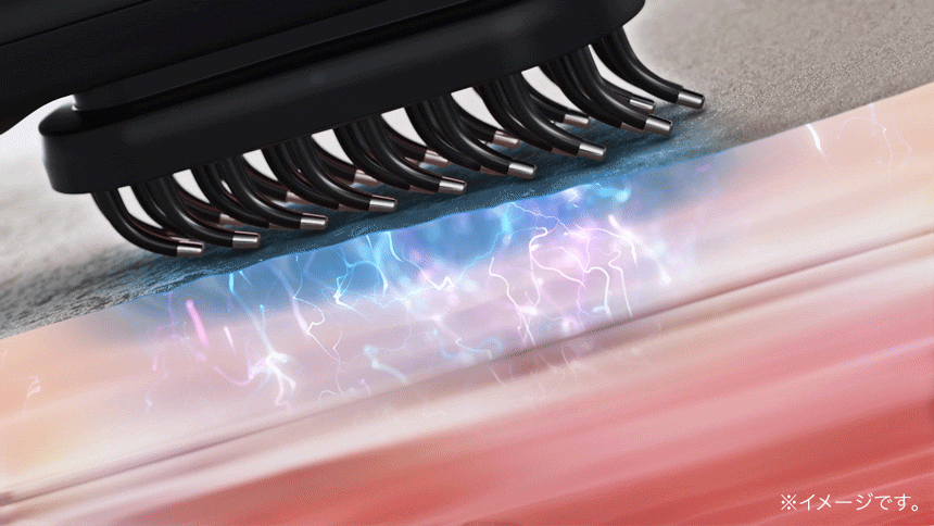 柔らかなブラシヘッド32本の電極針は、髪が絡みにくく、汚れもつきにくいシリコンブラシ採用。滑らかな使用感が特徴です。 -