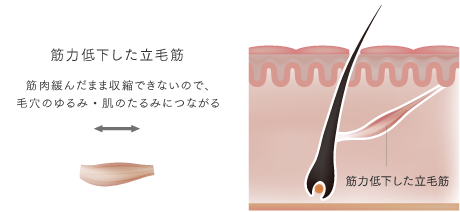 筋肉が収縮できず毛穴が目立つ