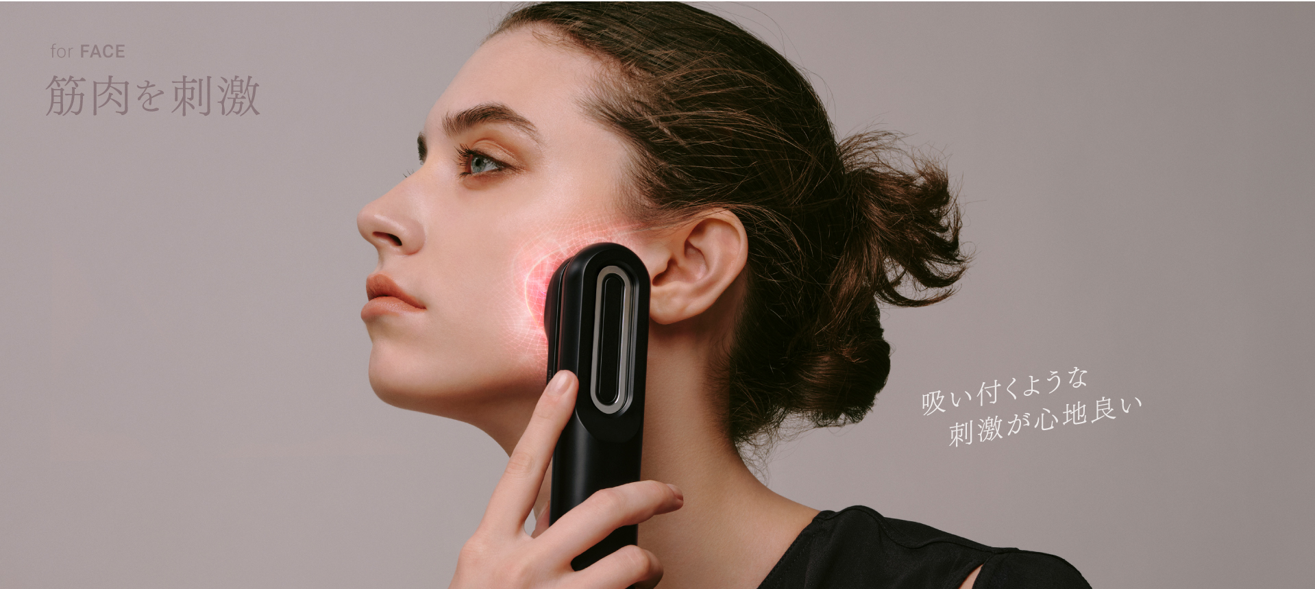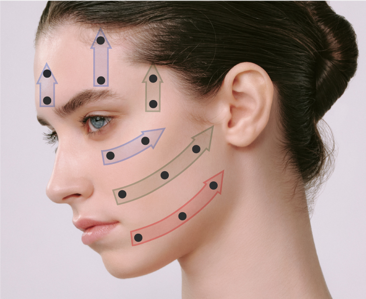 フェイスラインのもたつきなど、エイジングサインが気になる場合は、「お肌」と「筋肉」両方のケアがポイントです。お肌の表面を刺激して「肌弾力」ケアをすると、見た目印象アップにつながります。また、日常的には約30%しか動かせられていないと言われている「表情筋」をケアすることで、未来の美しさにもつながります。