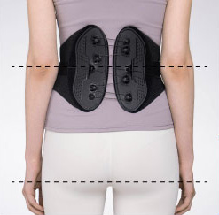 ベルトを左右に引っ張り、腰や骨盤に当てる。