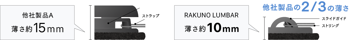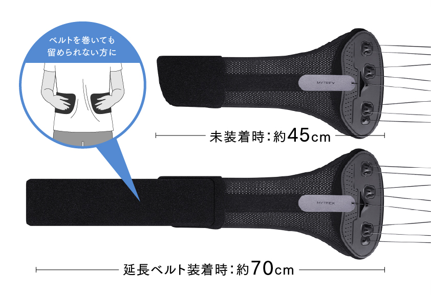 巻きつけて軽く引っ張るだけで、強力に体をサポートする腰ベルト。次世代滑車採用により、驚きの軽さと薄さを実現。薄くて目立たないので、人目を気にせずさまざまなシーンで使えます。