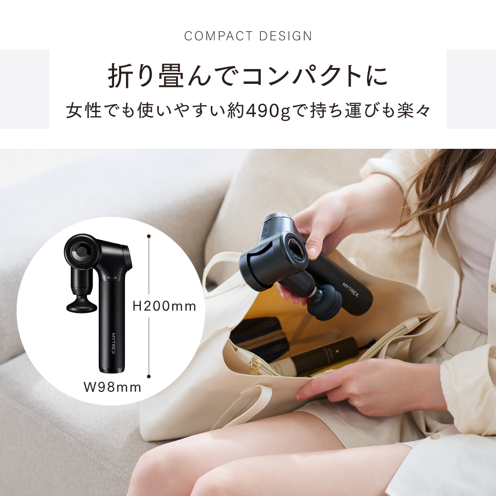 「REBIVE EX」シリーズから日々のボディケア専用に進化した「REBIVE EX FIT」が誕生。シリーズ最長約365mmの伸縮ハンドルと4段階に調整可能なアームを備えたハンディガンなので、1人ではケアしづらい背中や腰も簡単フィット。自由自在な形状でデスクワークや運動不足で固まりがちな背中にも最適。日々のケアに寄り添ったボディケアを叶えます。