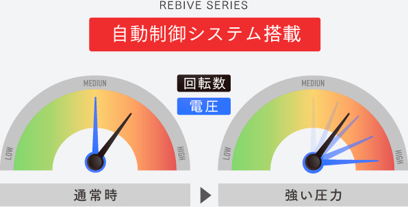 一般的なハンディガンの振幅4mm程度に比べて約2倍もの8mmストロークで強い打撃感を実現。筋肉量の多い方にもおすすめです。