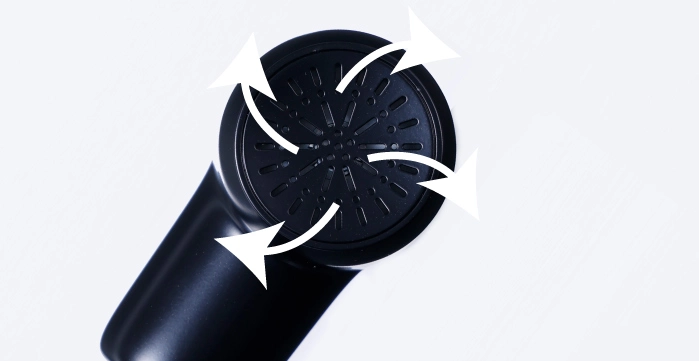 小型のハンディガンは、熱がうまく逃せずに本体が熱くなりがちに。独自構造により、本体使用時の熱を効果的に放出し安全性を高めました。