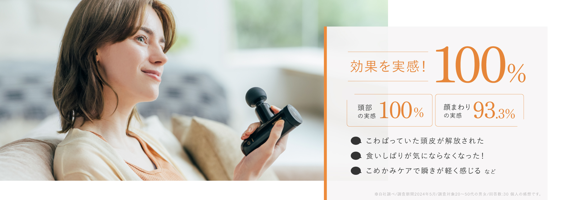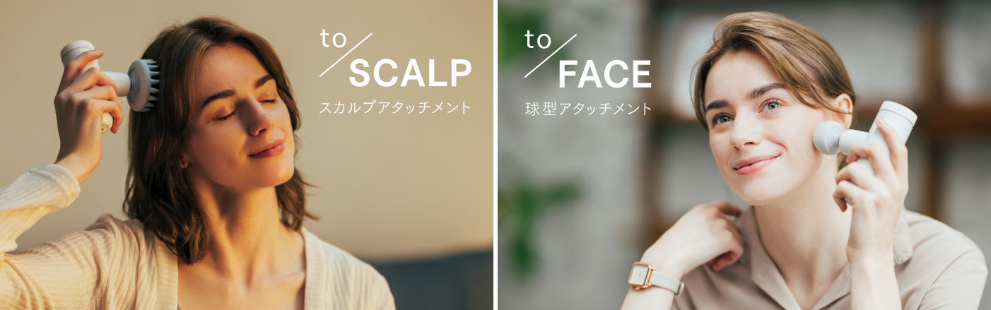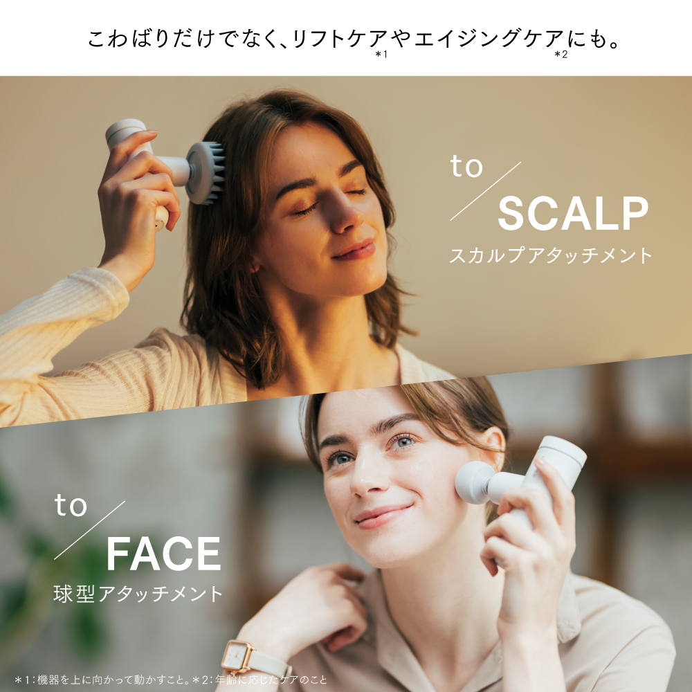 フェイスラインのケアや頭皮のこわばりケアも、繊細な刺激と付属のアタッチメントを掛け合わせることで