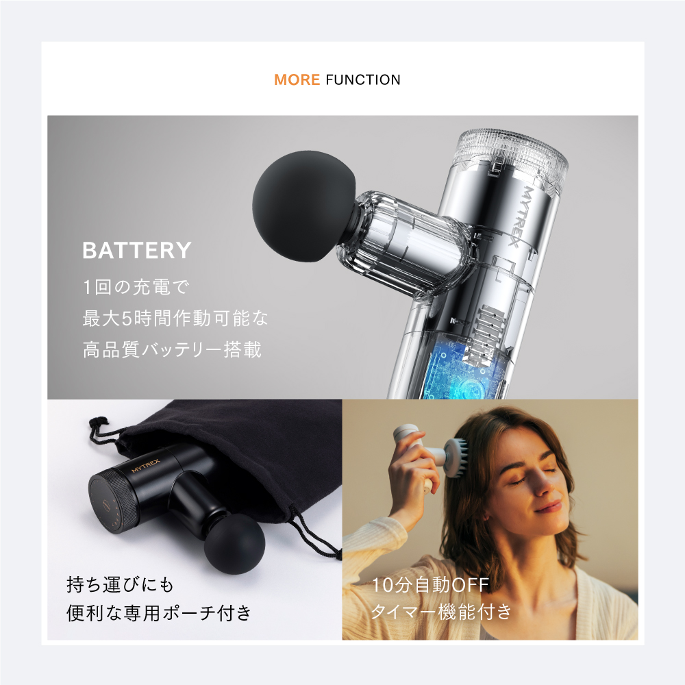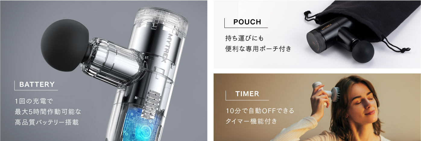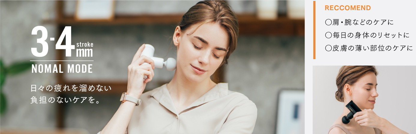 ハンディガンのみでは届きにくい背中全体の筋肉や腰回りのボディケアを叶えます。全身を手軽にメンテナンスしたい方にオススメです。