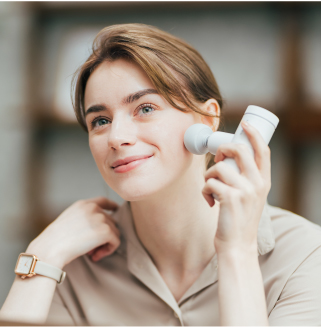 ハンドル部分をしっかりと手で持ち、肌に軽く当てて使用してください。