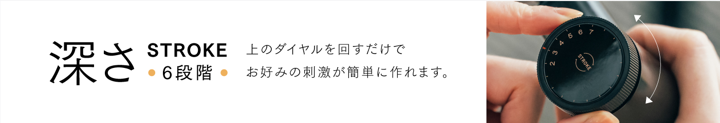 本体上部のストローク調整ダイヤルを回して、ストロークを選択。本体の赤いマークにストローク(2~7mm)のマークを合わせてください。