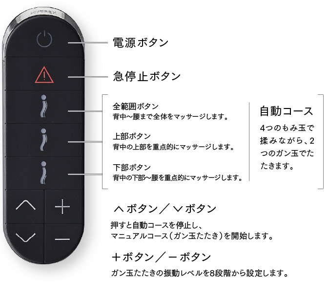 医療機器認証済みの本格的なマッサージ機器のため、あんま・マッサージの代用(一般家庭で使用すること)として、効果の表示が認められています。