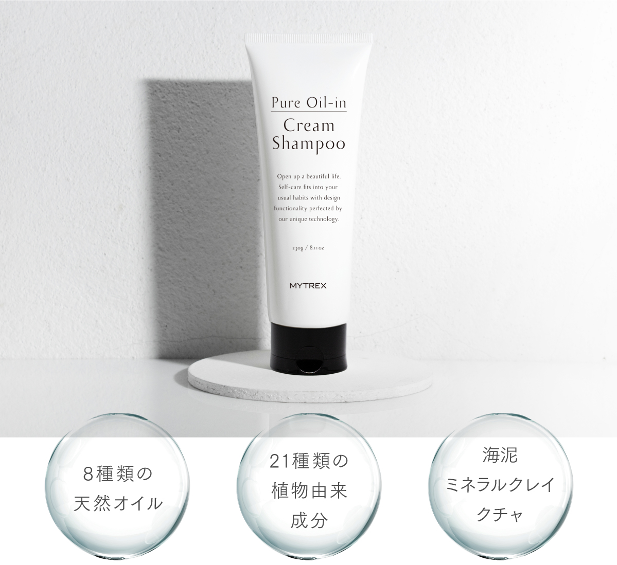 MYTREXから“自然派オールインワンクリームシャンプー”が誕生。5種類のオーガニックオイル、21種の植物由来成分と8種の天然オイル成分もたっぷり配合し、髪を優しくケア。洗髪・頭皮ケア・補修・保湿のヘアケアのステップを1本でカバー。潤い髪を叶える新感覚のクリームシャンプーです。