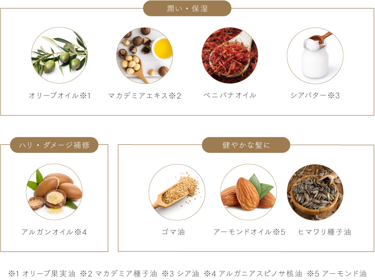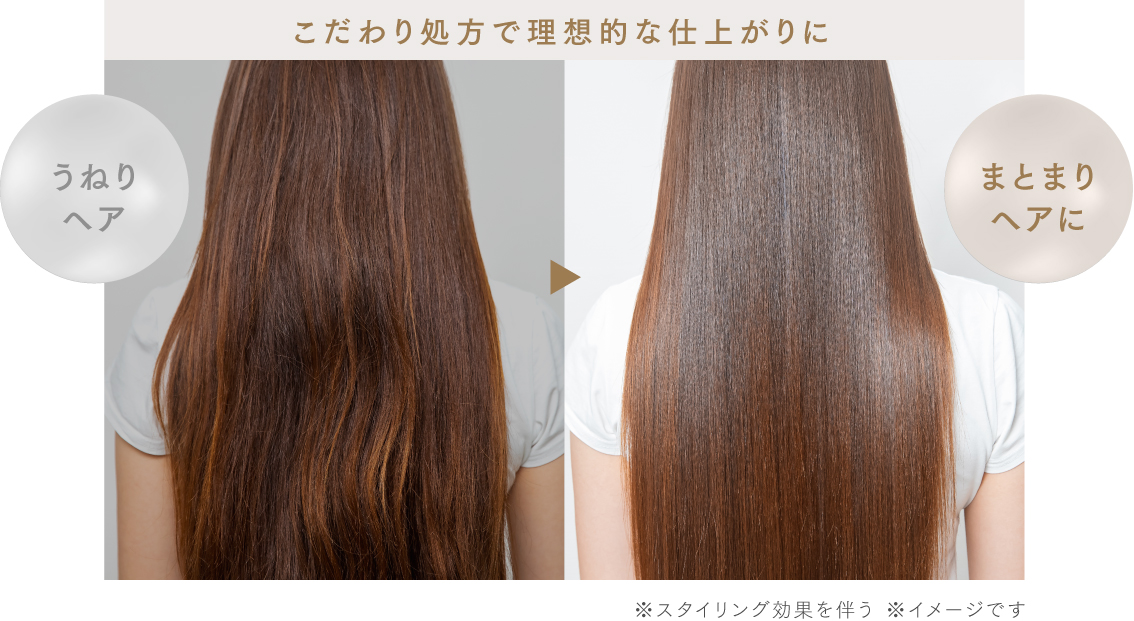 自然由来の厳選したツヤ成分をたっぷりと配合。ダメージで失われた栄養を髪の内部まで集中補給。潤いを与え、まとまりのある柔らかな髪へと導きます。