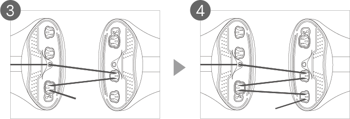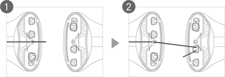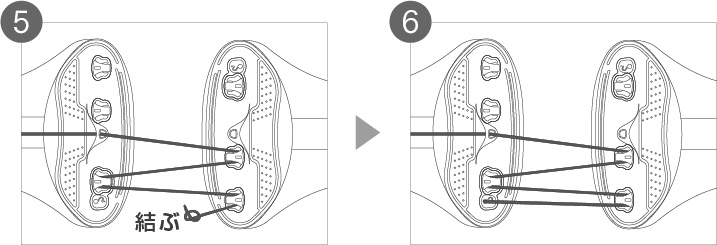中央の穴にストリングを通し、反対側の取付穴に通します。