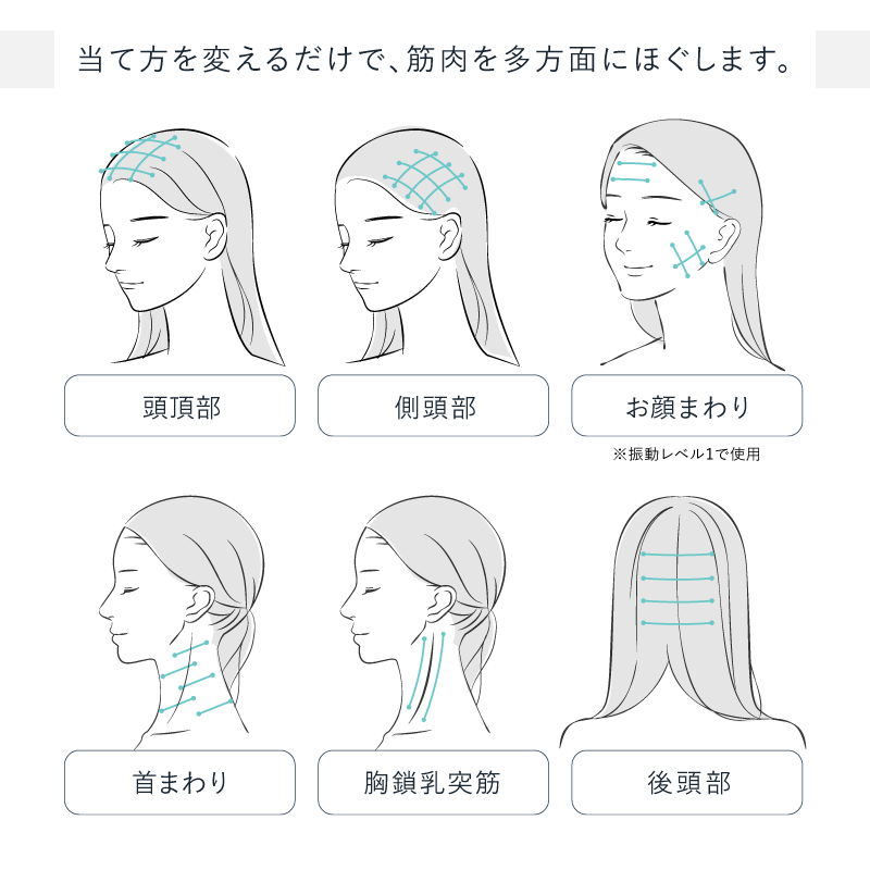筋肉を多方面にときほぐせます。 当て方を変えるだけで、
