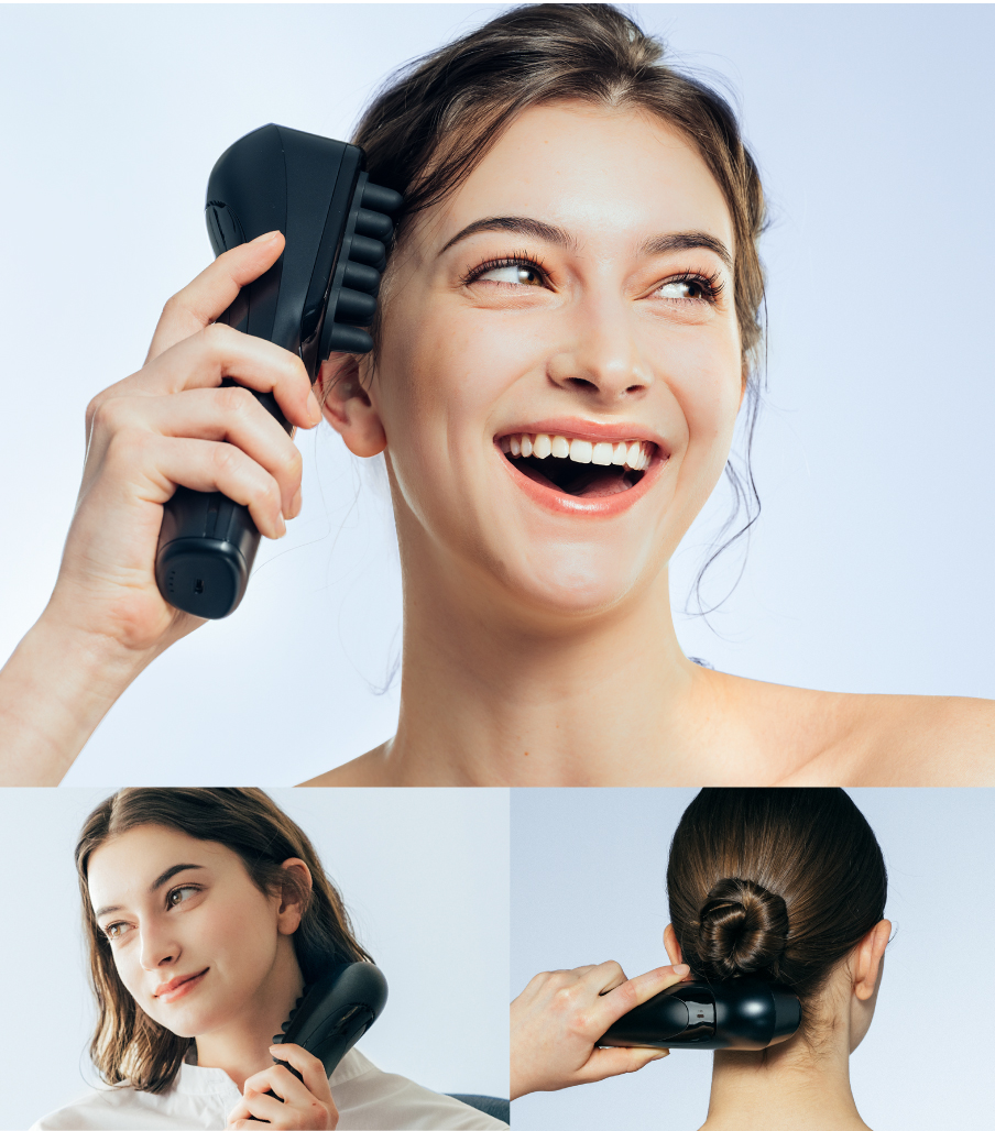 筋肉も刺激。 3つの技術を駆使したアプローチで、頭皮を左右に揺らし