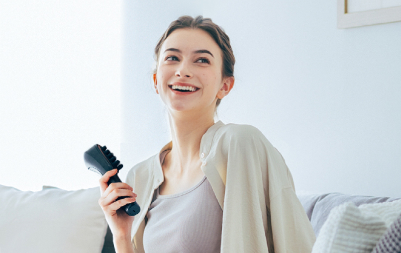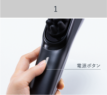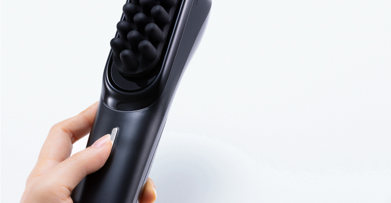 ●本体をしっかりと手で持ち、ブラシ全体を頭皮や肌に垂直に当ててください。