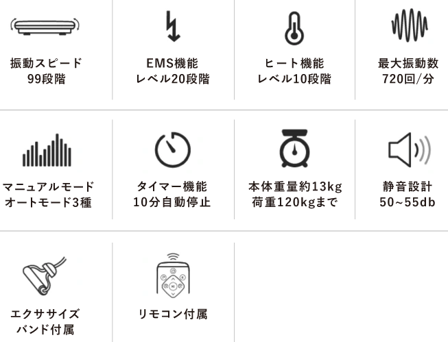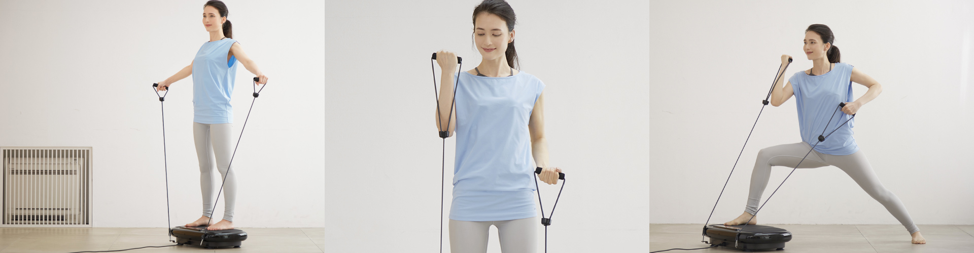 EMSで負荷をかけながら振動させることで、筋肉へ効率的にアプローチ。簡単な動きでも実際の運動のように筋肉を動かしている状態を実現し、振動のみのマシンより高いパフォーマンスが期待できます。本気でエクササイズをしたい方から、激しい運動が難しい方まで、あらゆる方のボディケアに。